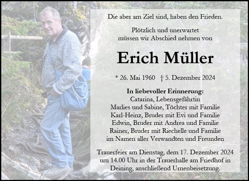 wir wünschen Ihnen für die kommende Zeit viel Kraft und dass es Ihnen gelingt, dankbar auf die positiven Erinnerungen zurückzublicken. Diese Gedenkseite möge Ihnen dabei helfen, Ihre Trauer zu teilen und das Andenken gemeinsam wachzuhalten.