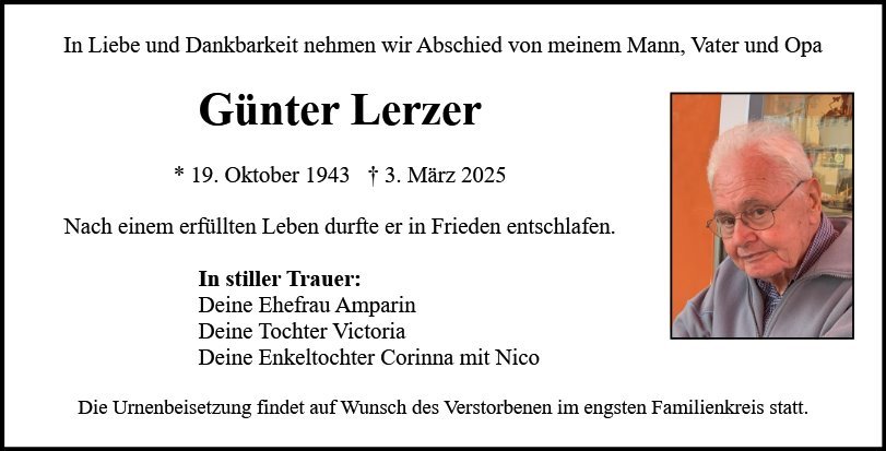 Günter Lerzergestorben am 3. März 2025