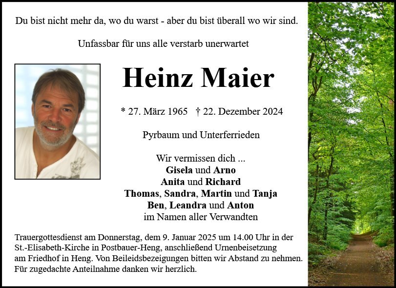 Heinz war für mich der beste Freund, den man sich nur wünschen kann-von Kindesbeinen an-bis heute und das ändert auch der Tod nicht! Auch wenn man es niemals versteht und ständig nach dem Warum fragt, muss man es schweren Herzens akzeptieren.