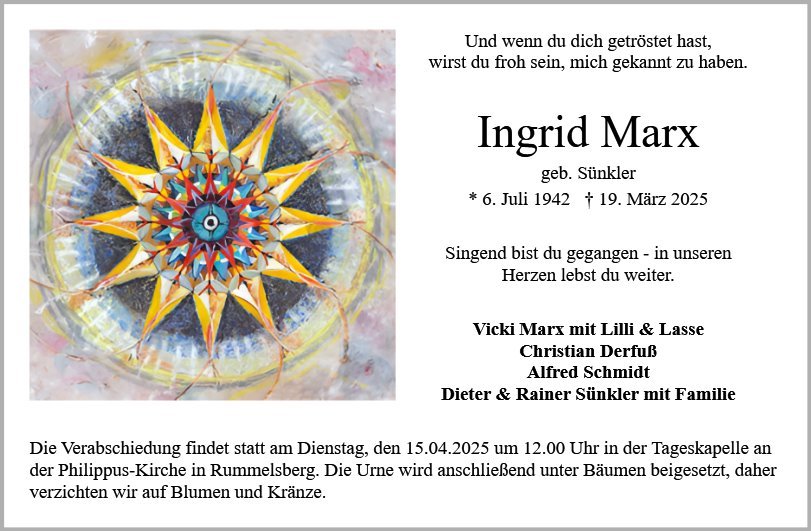 Ingrid Marxgestorben am 19. März 2025