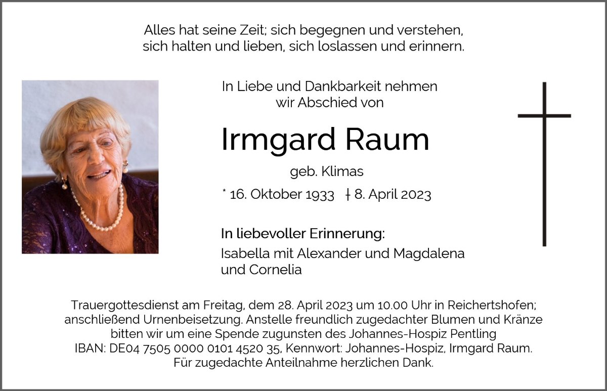 Irmgard Raumgestorben am 8. April 2023