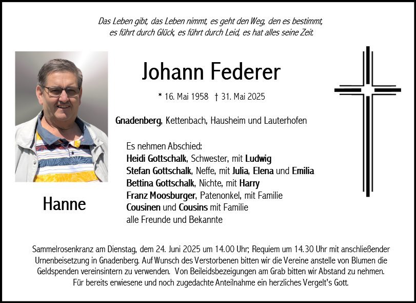 Johann Federergestorben am 31. Mai 2025