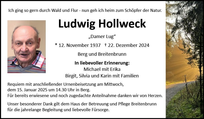 geboren am 12. November 1937 in Loderbach, jetzt Berg