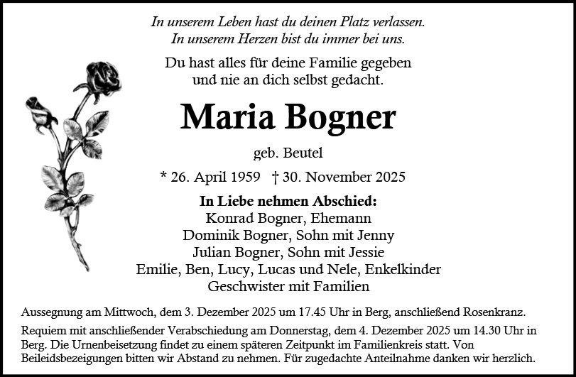 Maria Bognergestorben am 30. November 2025