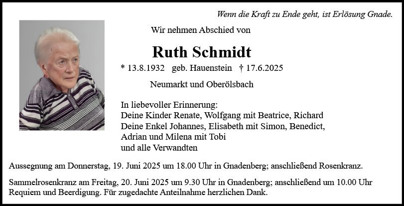 Ruth Schmidtgestorben am 17. Juni 2025